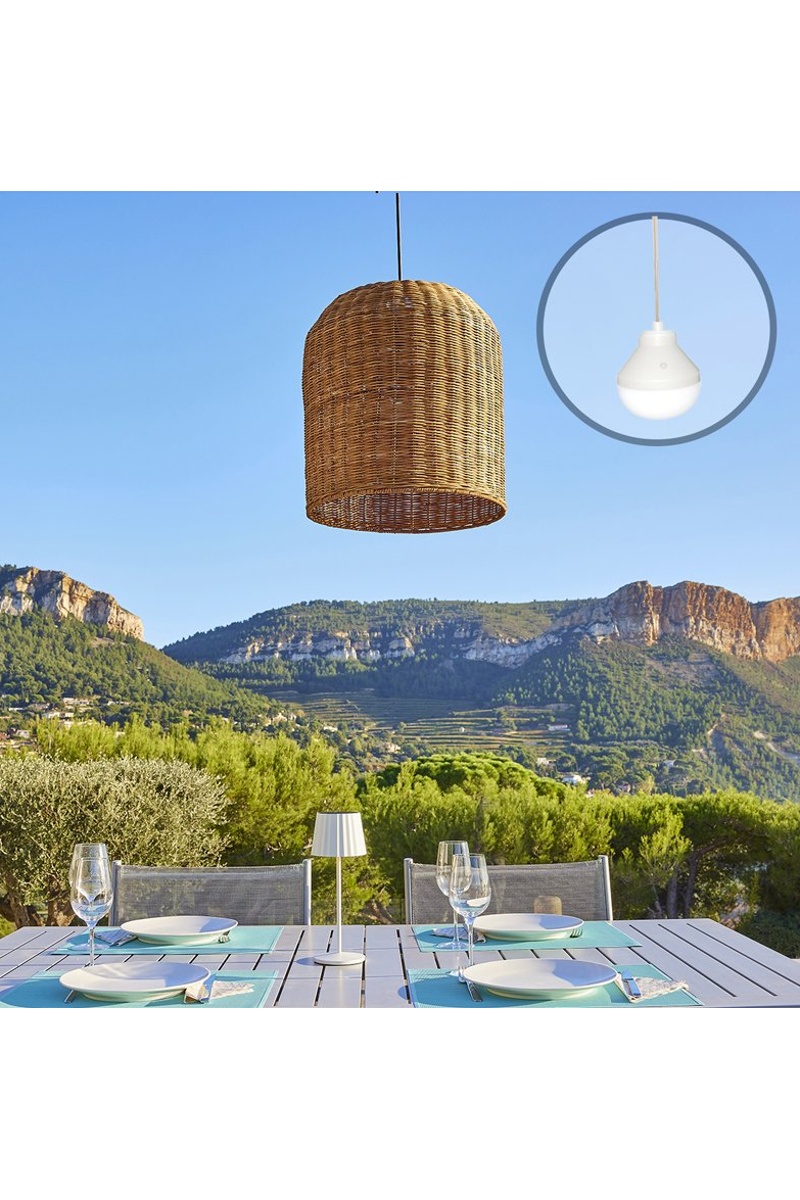 Lampadario con lampadina LED portatile in rattan Giacomo Nomad - Neutro