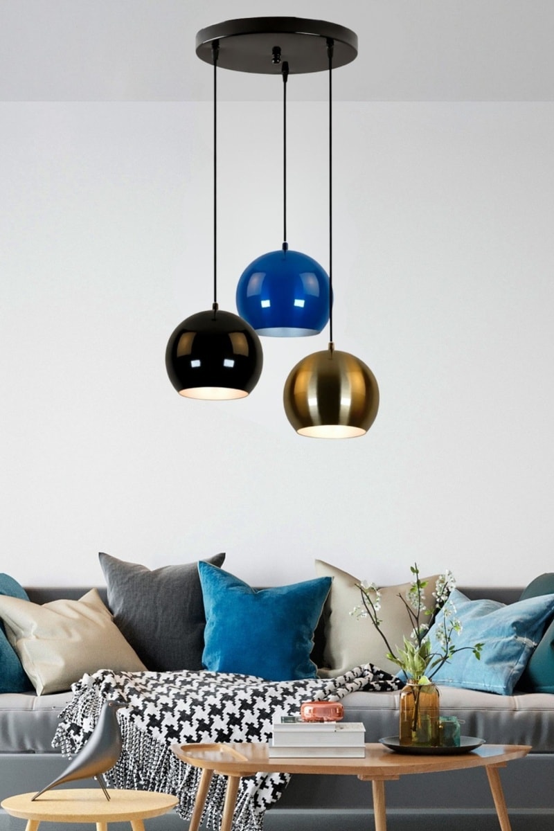 Lampadario - Dorato e cobalto - 3 x 40 W