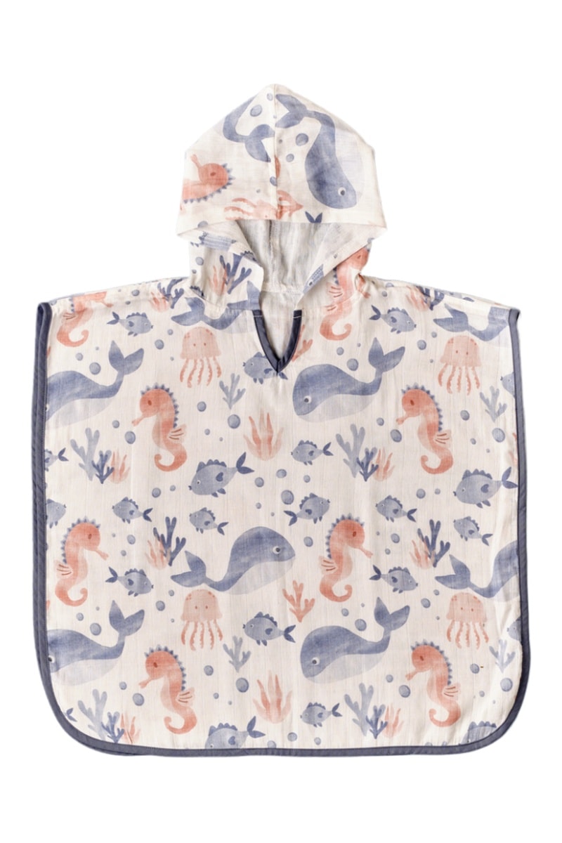 Poncho con cappuccio - Bianco e blu