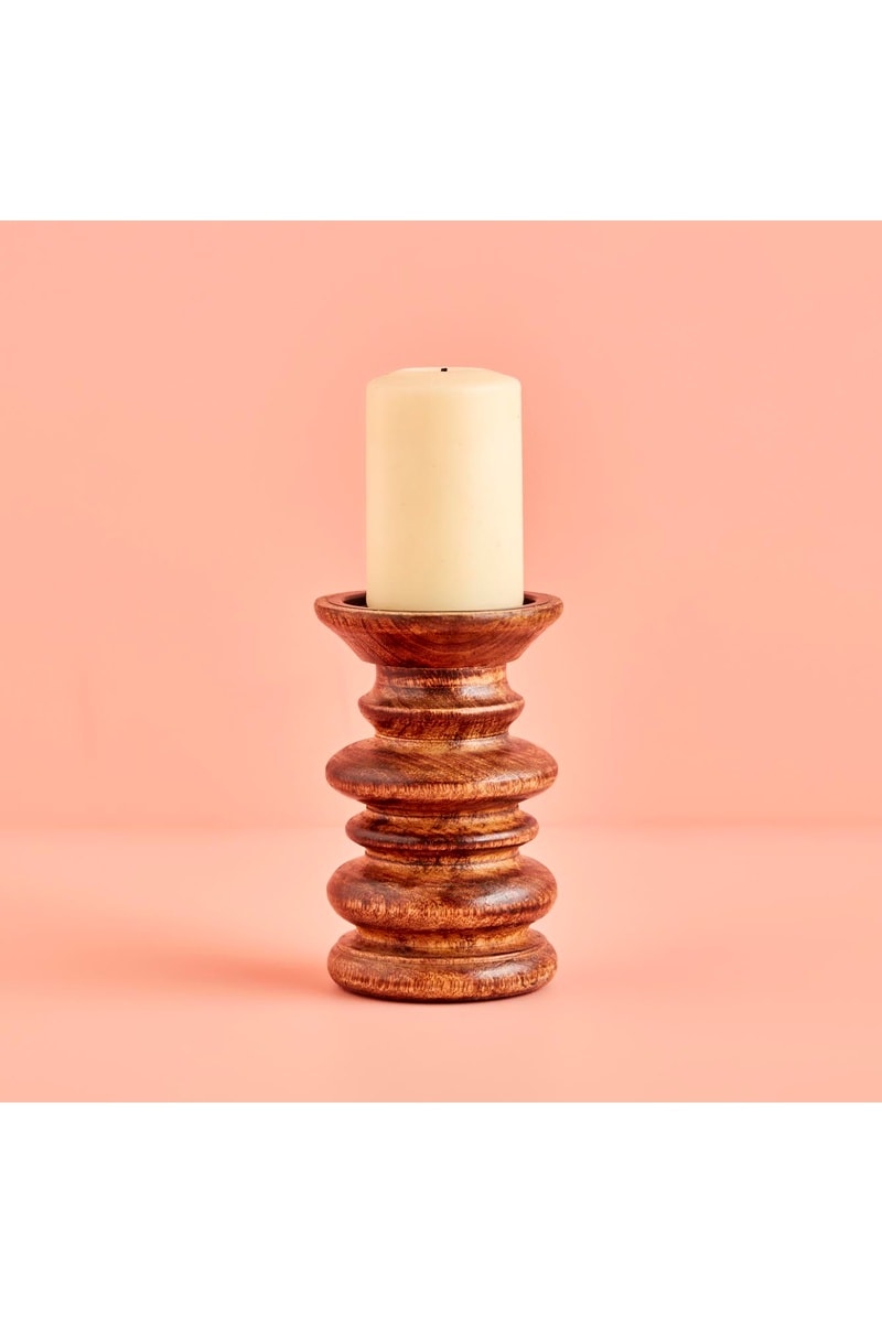 Portacandela in mango - Neutro - 10 x 10 x 15 cm