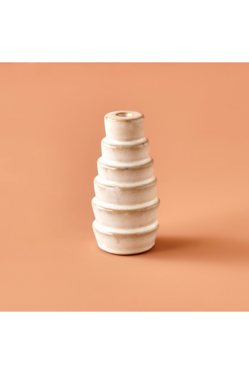 Portacandela in porcellana - Beige - 6 x 6 x 12 cm