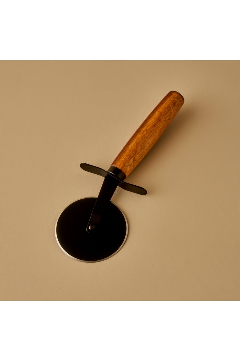 Vassoio in acacia e rotella tagliapizza