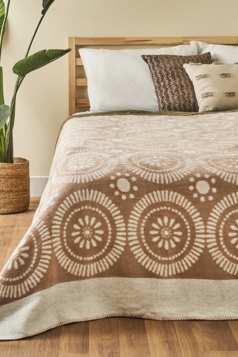 Copriletto in cotone - 57 fili/cm² - Beige e marrone