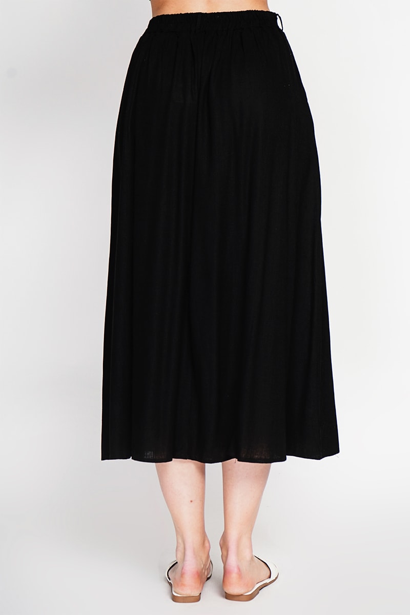 Gonna a campana in lino - Nero