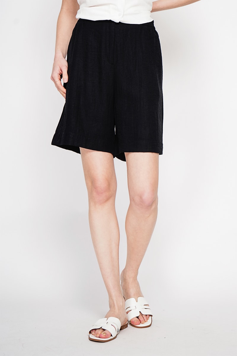 Shorts in lino a vita alta - Nero