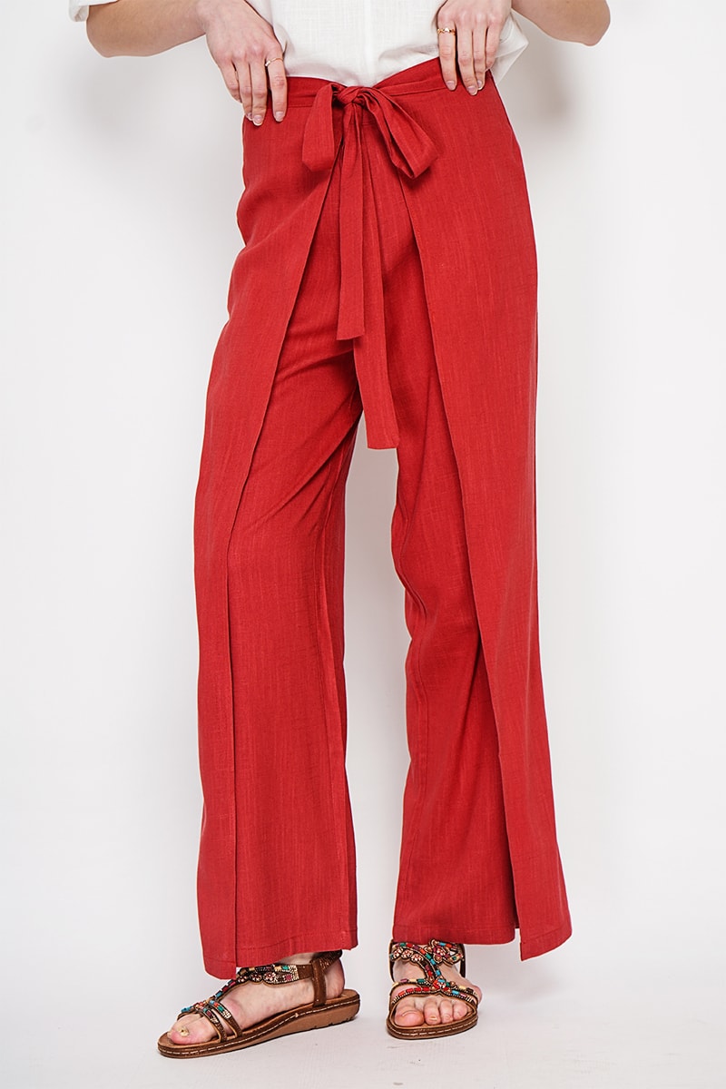 Pantaloni a portafoglio in lino - Rosso