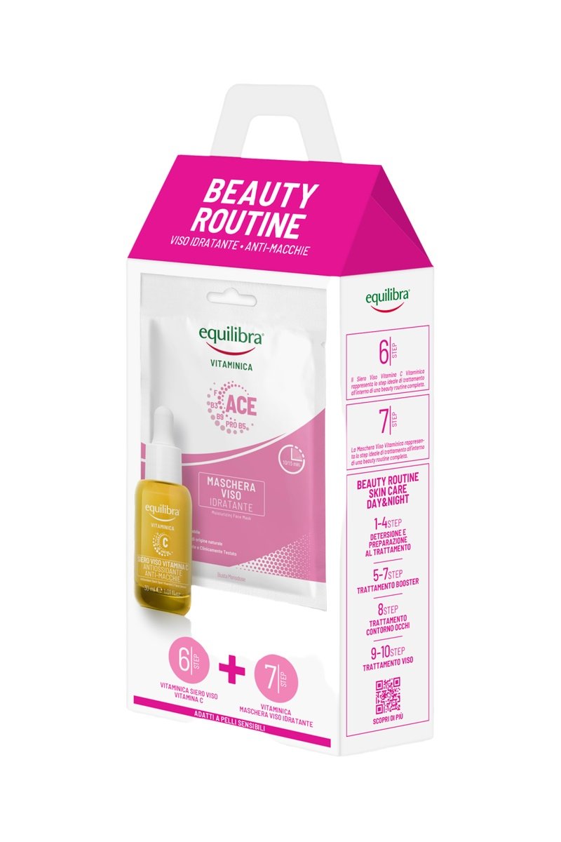 La concentrazione di vitamina C, con l’ausilio di complessi multivitaminici e di coadiuvanti poliidrossi ad azione illuminante e idratante (PHA), rende il prodotto ideale per controllare l’aspetto delle macchie scure e contrastare l’azione dei radicali liberi; 1 maschera viso idratante, una maschera in tessuto 100% naturale, studiata per un’efficace azione idratante.