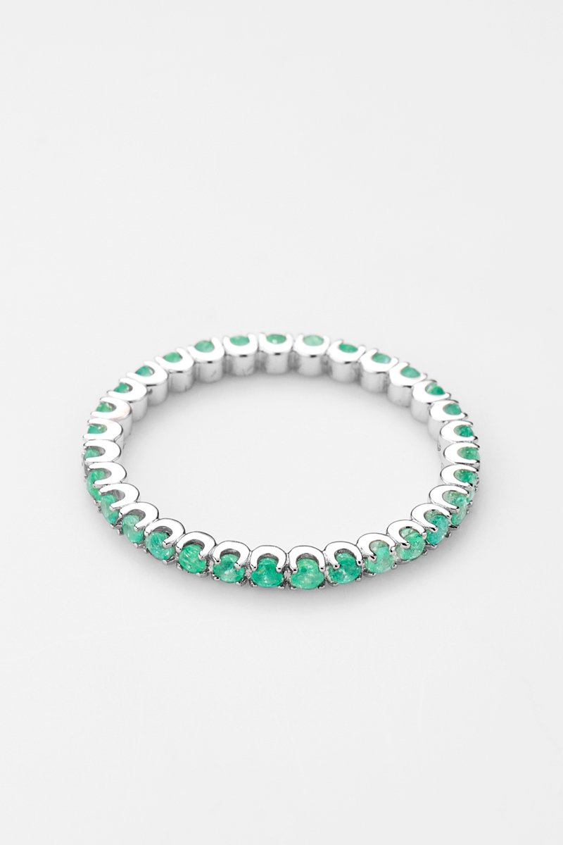 Anello in oro bianco con 33 smeraldi.