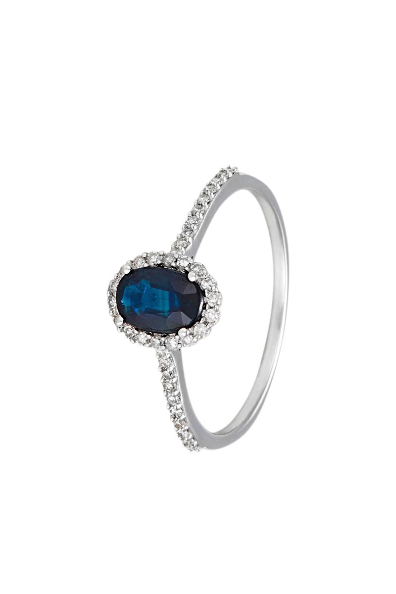Materiali: oro bianco 375, diamanti 0,14 kt/36 e zaffiro 0,6 kt