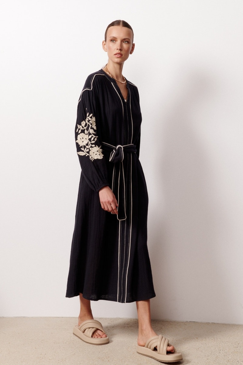 Maniche lunghe con elastico e motivi fiori ricamati.
