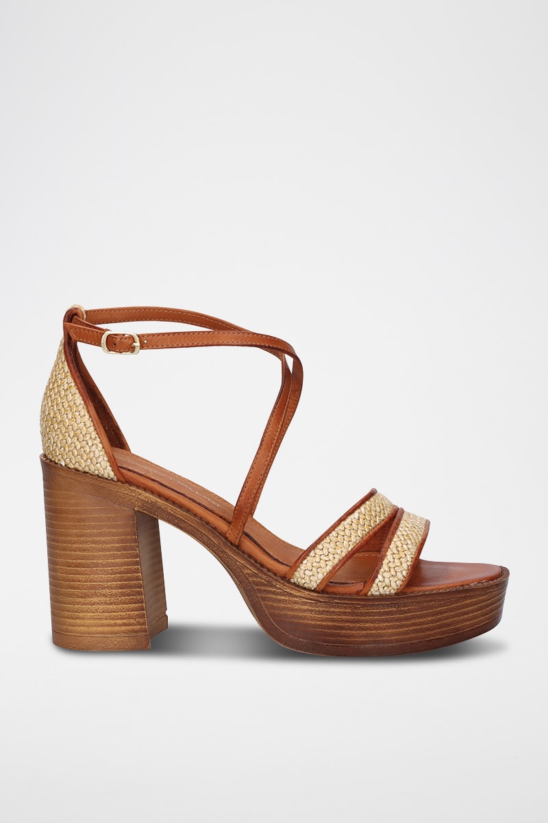 Sandali con zeppa in pelle.