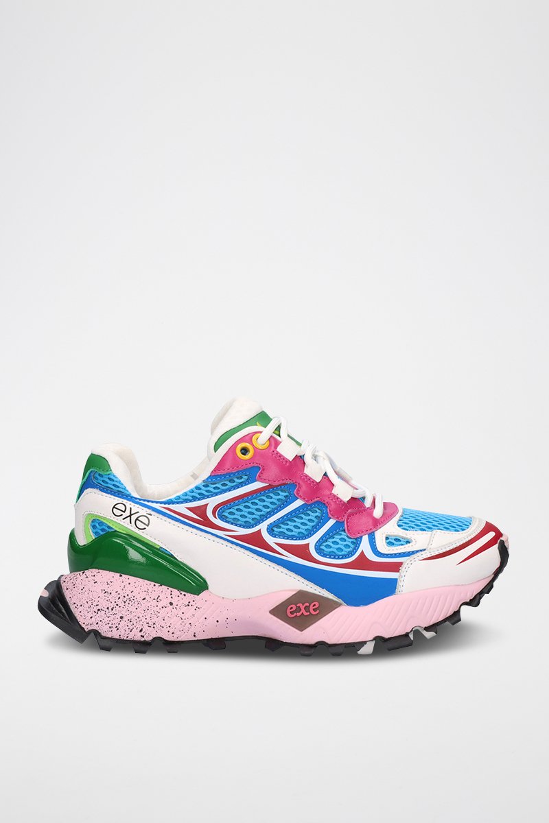 Sneakers platform in pelle - Verde e rosa