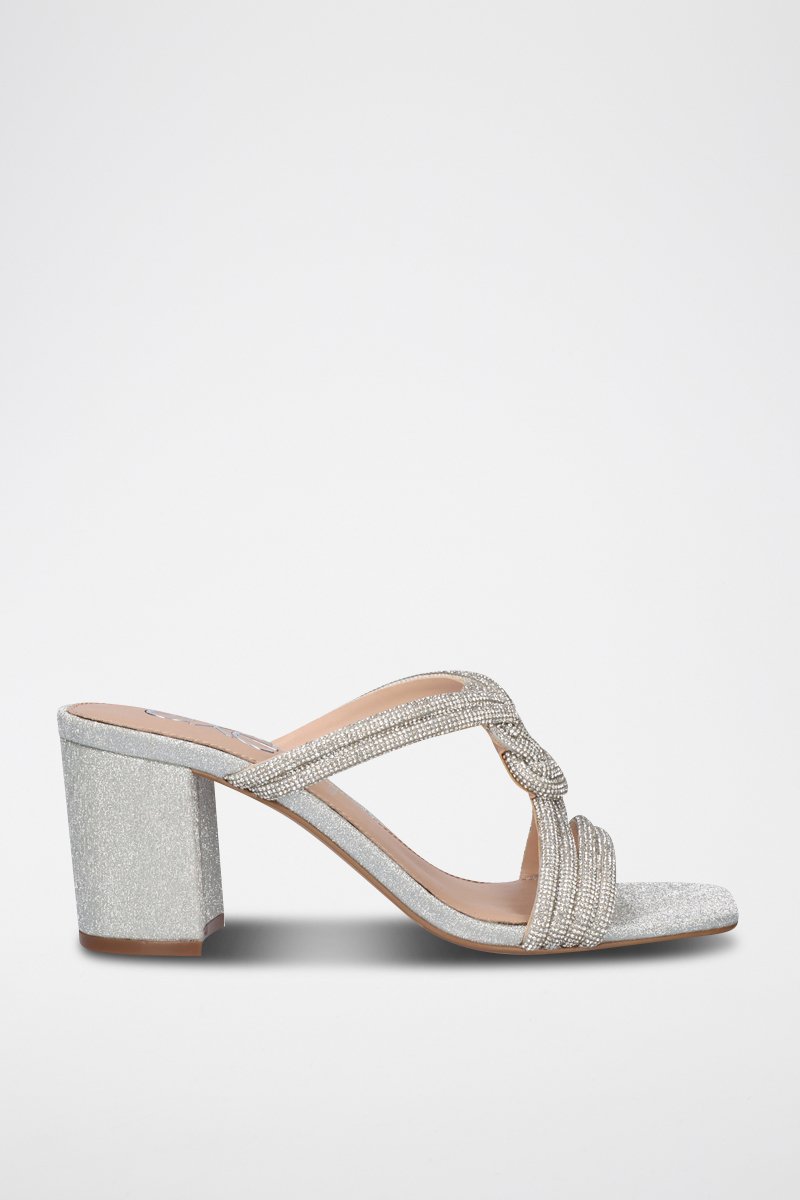 Sandali con tacco con strass e glitter.