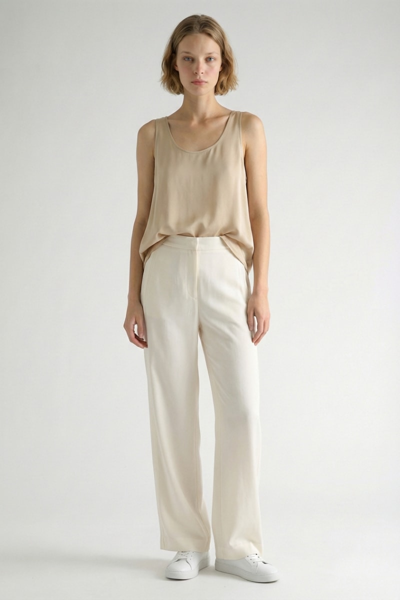 Pantaloni a vita alta - Panna