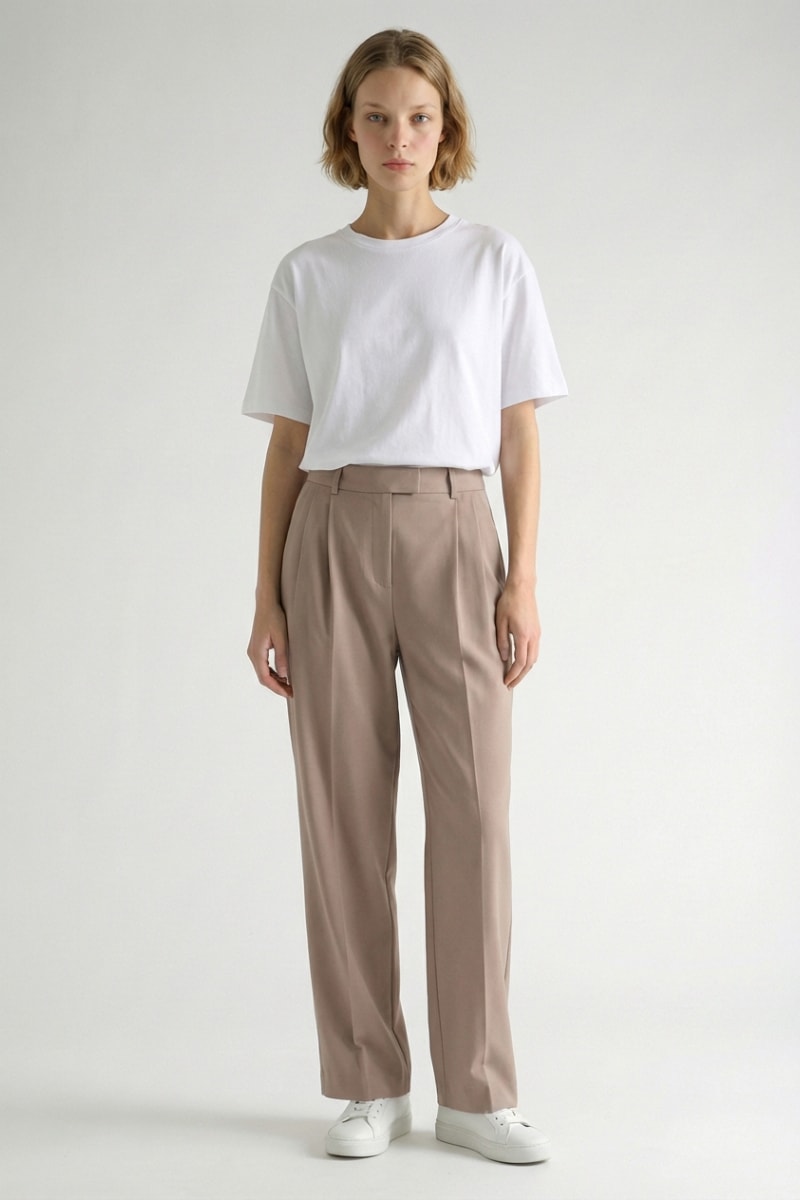 Pantaloni relaxed a vita alta in lana - Beige