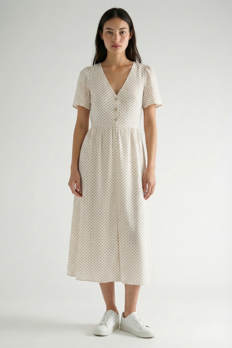 Abito midi a maniche corte.
