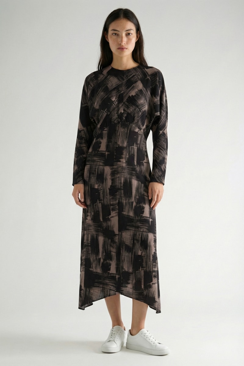 Abito midi con maniche lunghe a pipistrello.