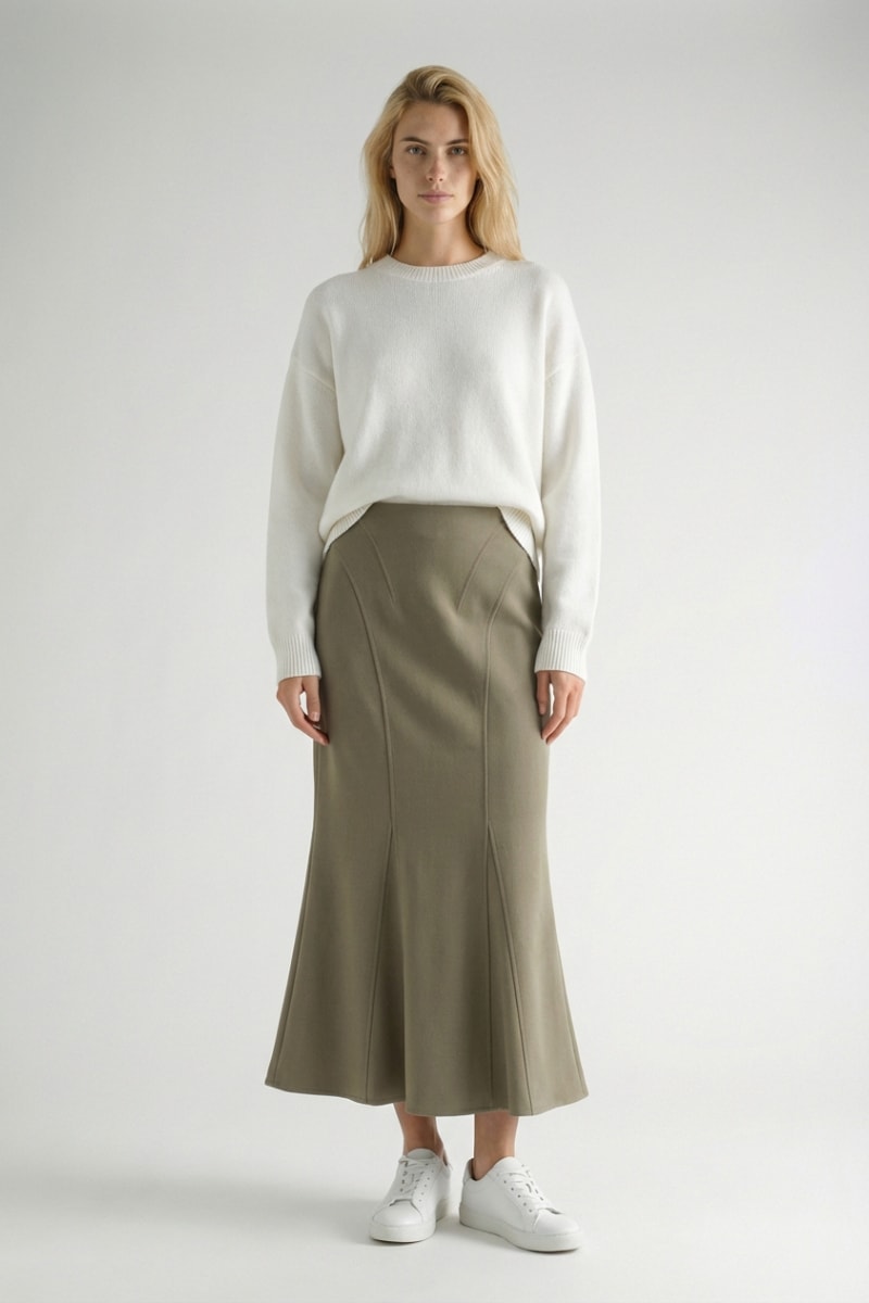 Composizione: 57% viscosa, 38% poliestere e 5% elastan
