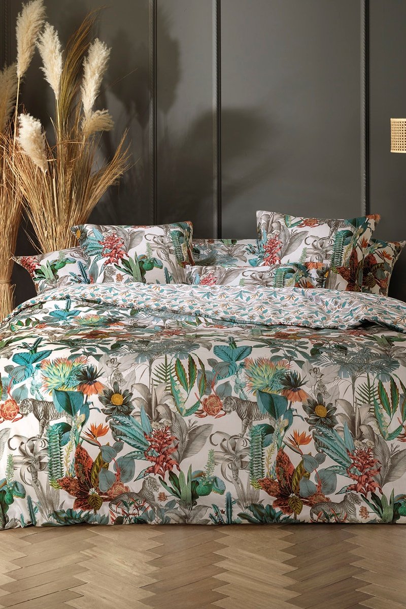 Parure copripiumino in raso di cotone 80 fili/cm² Zanzibar - Bianco e verde smeraldo