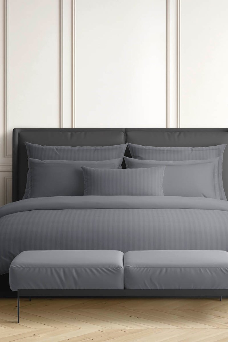 Parure copripiumino in raso di cotone 80 fili/cm² Dobby - Grigio scuro
