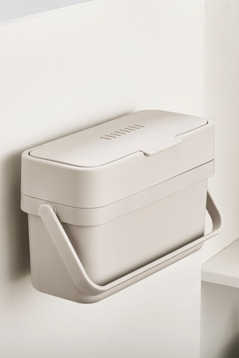 Questo contenitore compatto è stato progettato appositamente per facilitare la raccolta dei rifiuti alimentari.