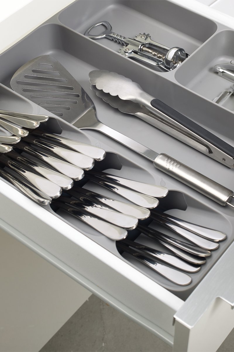 Il design prevede scomparti sovrapposti per le posate, oltre a spazio per utensili e gadget, in modo da poter facilmente combinare due cassetti in uno solo.