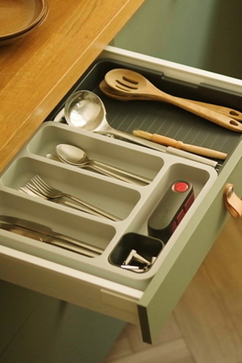 Il portaposate è dotato di quattro scomparti profondi per le posate, uno scomparto per coltelli o utensili più grandi e un piccolo scomparto mobile per riporre i piccoli utensili.