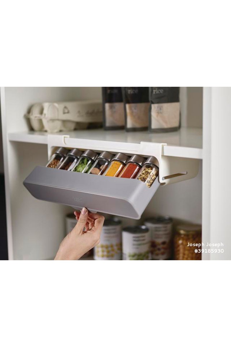 Include uno scomparto astuto e scorrevole che può contenere fino a sette vasetti per spezie standard (non inclusi).
