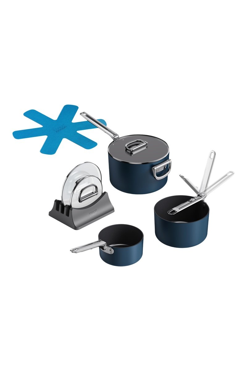 S'incastrano perfettamente e sono dotate di maniglie intelligenti pieghevoli in acciaio inossidabile che permettono di risparmiare fino al 50% di spazio aggiuntivo rispetto alle padelle standard quando sono riposte.