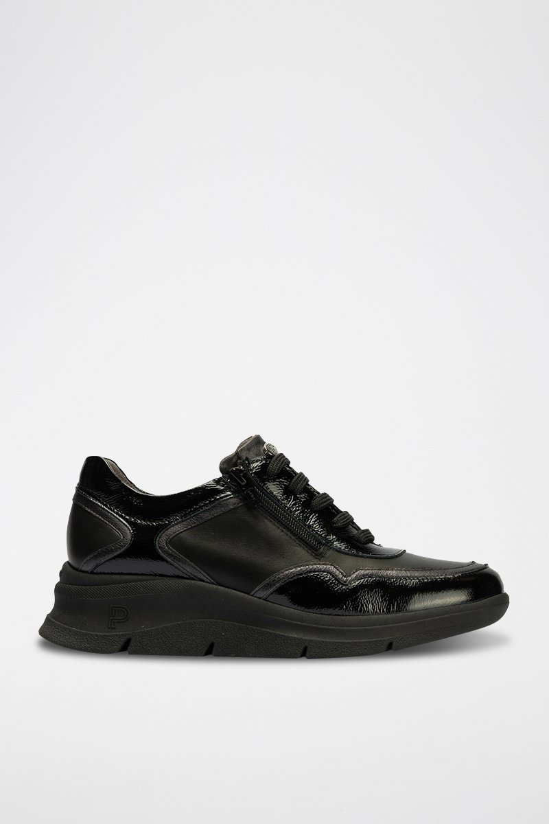 Chiusura con lacci sul davanti e con cerniera sul lato.