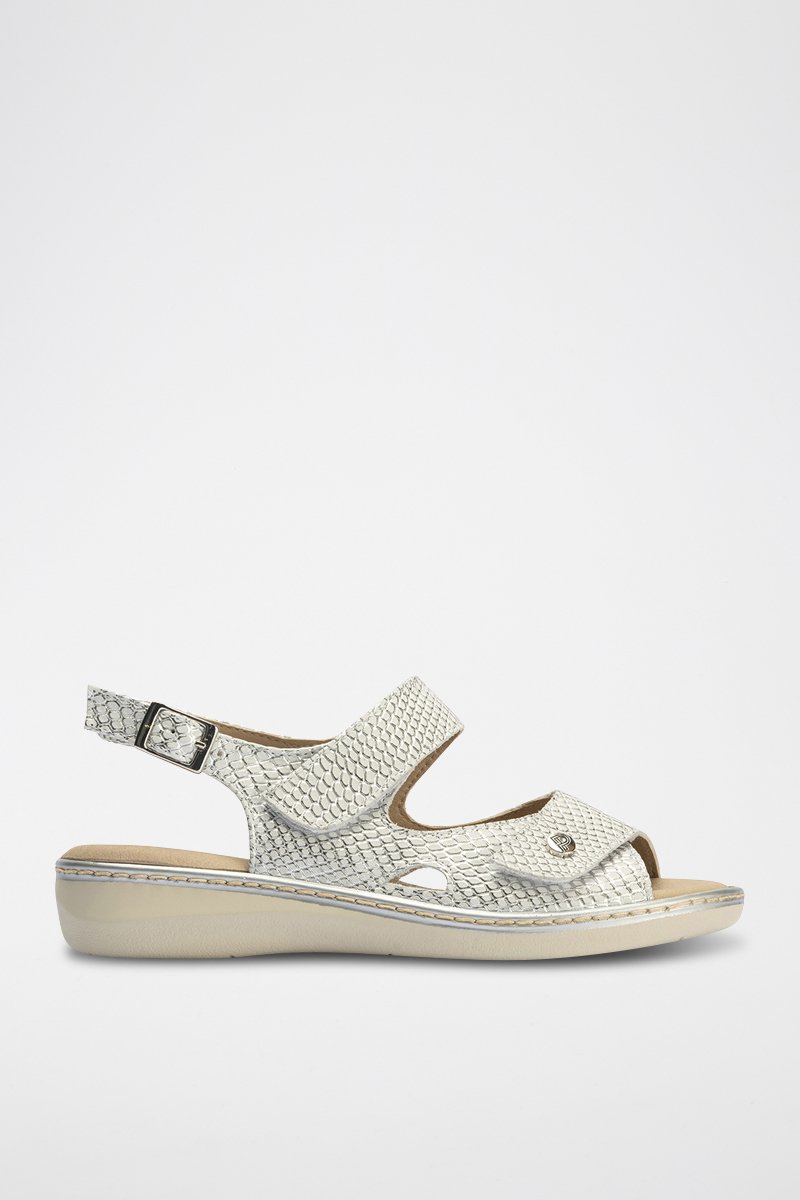Chiusura a strappo sul davanti e con cinturino e fibbia sul lato.