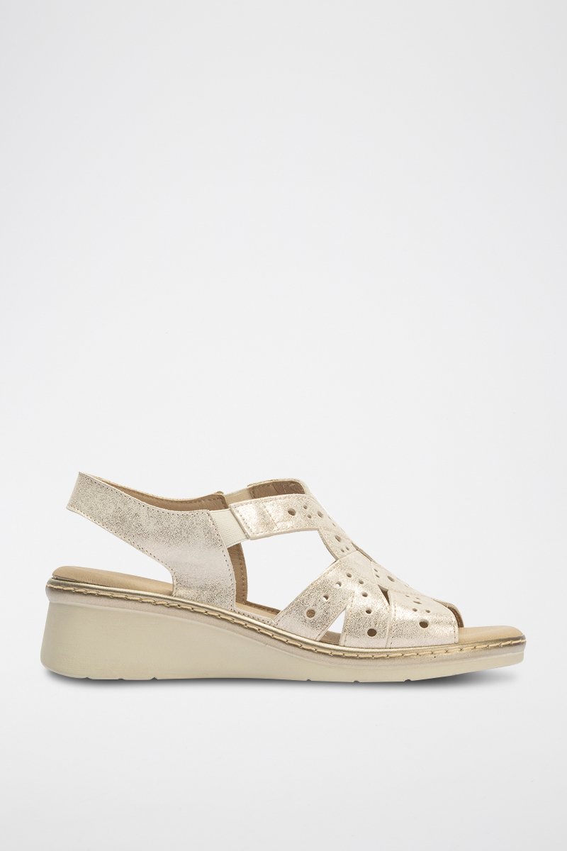 Sandali con zeppa in pelle - Dorato