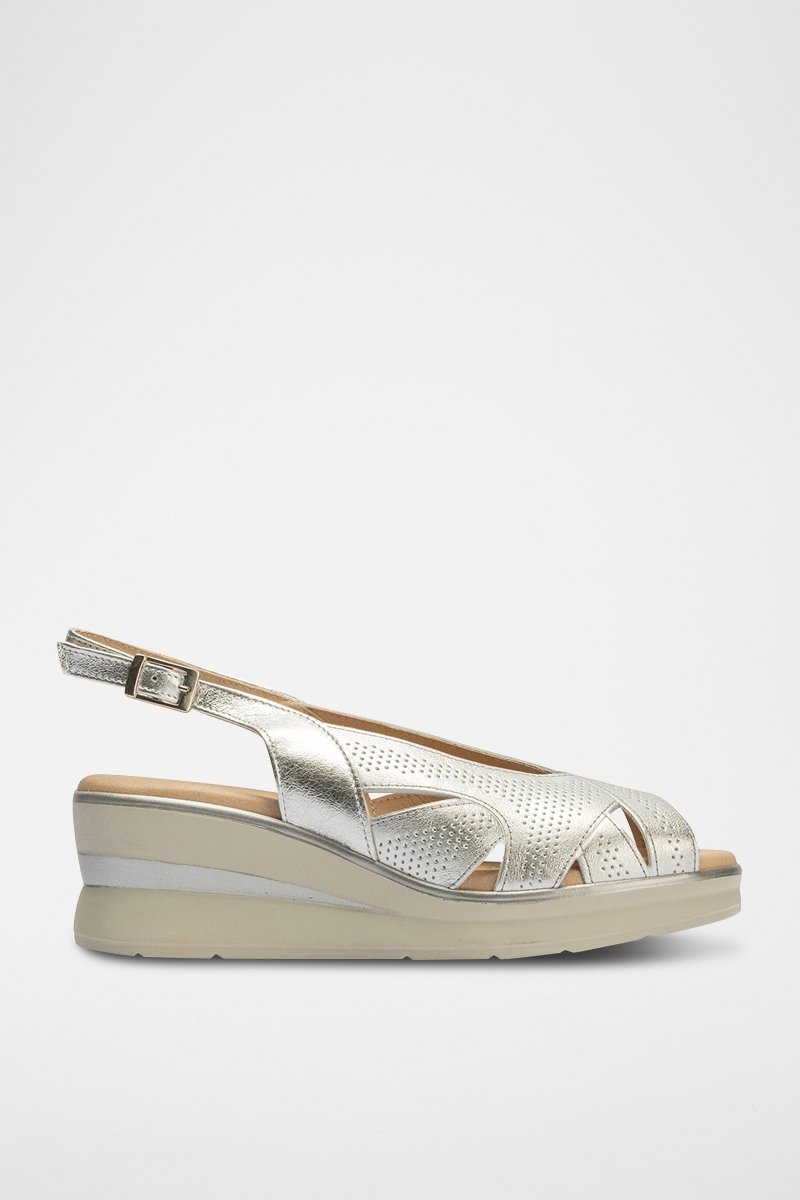 Sandali con zeppa in pelle - Argentato