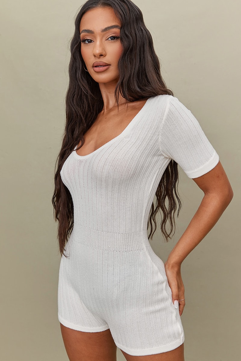 Tuta corta in maglia a costine.