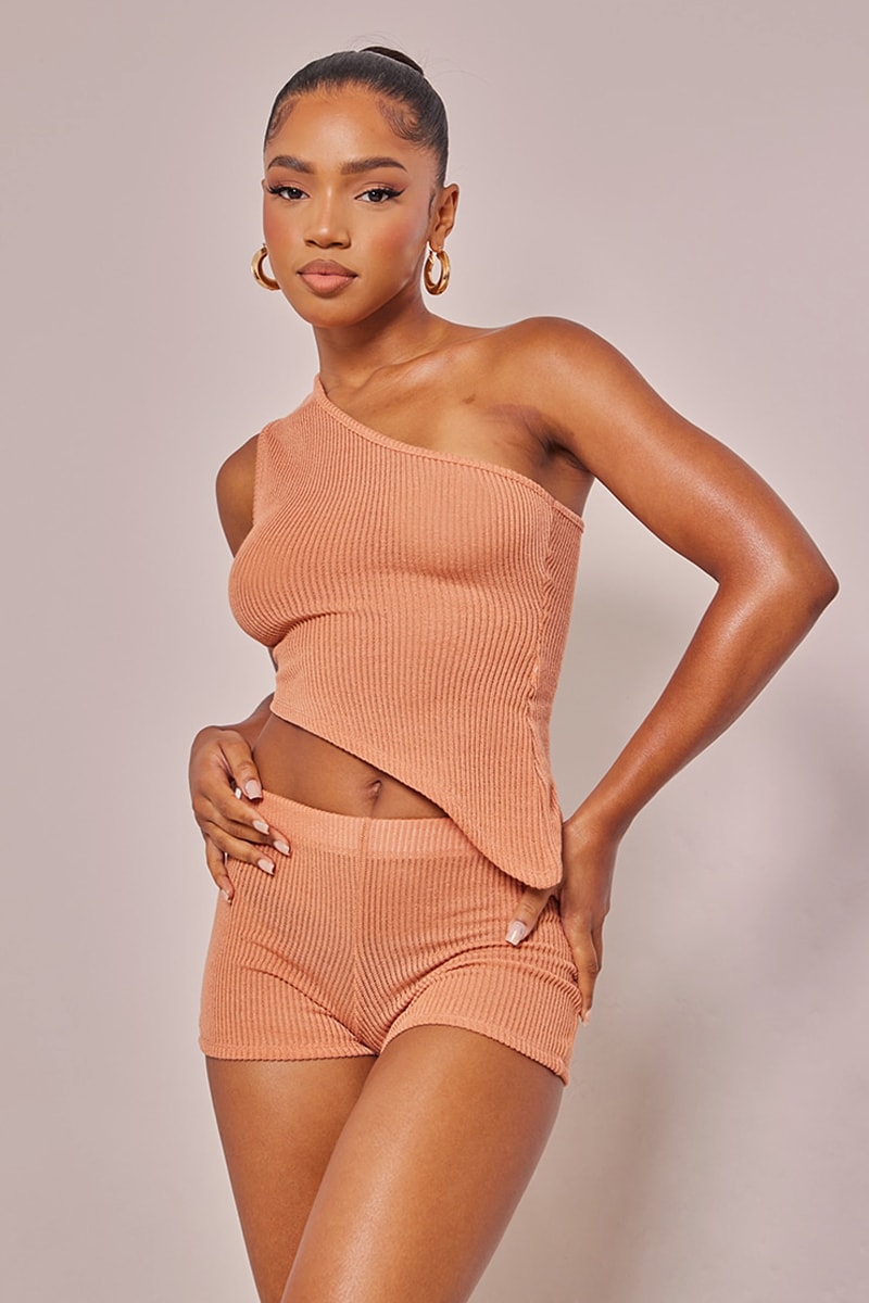 Top asimmetrico in maglia a costine.