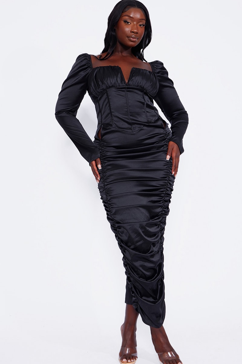 Abito lungo in raso - Nero