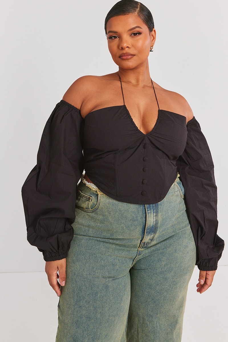 Top a maniche lunghe a sbuffo con elastico.