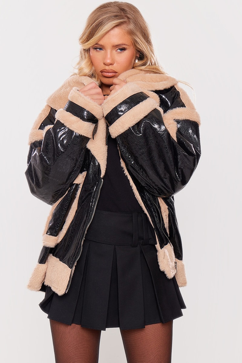Inserti in pelliccia sintetica sul collo, sulle maniche e alla base.
