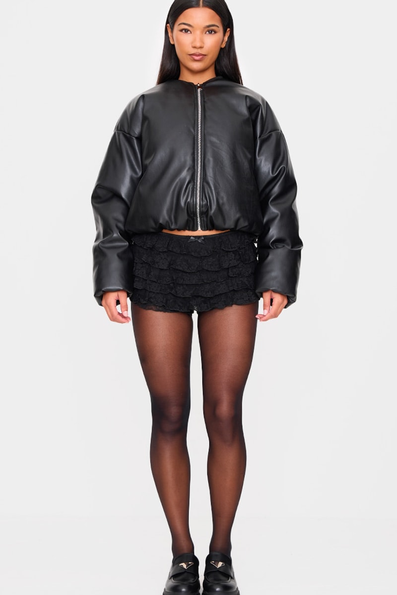 Bomber e minigonna in pizzo - Nero