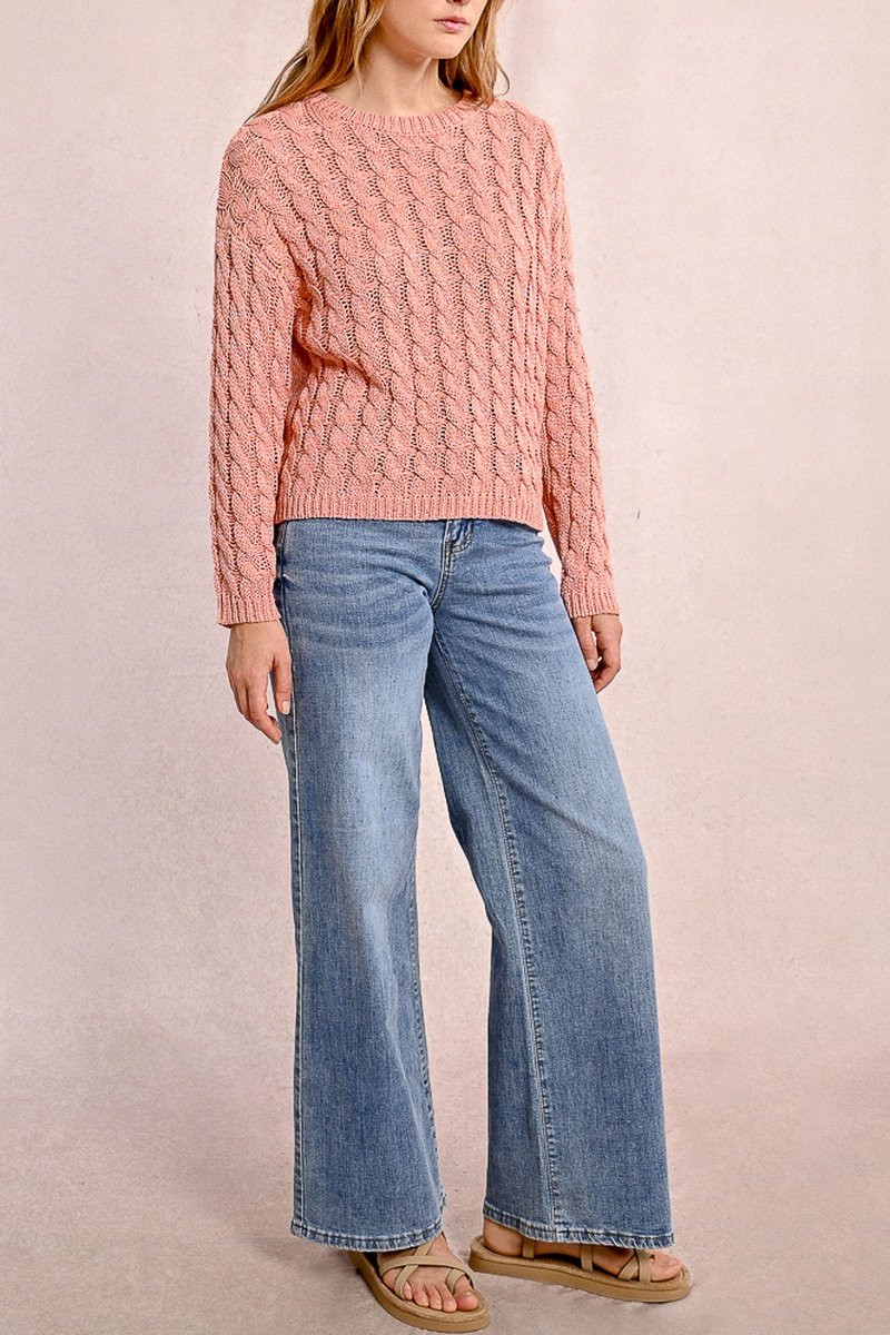 Lavorazione intrecciata sulle maniche e sul davanti.