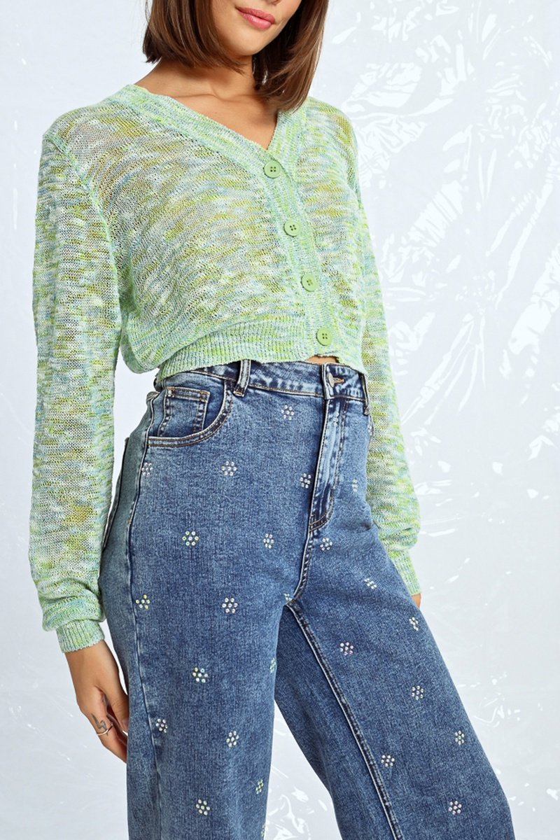 Cardigan corto - Verde chiaro melange