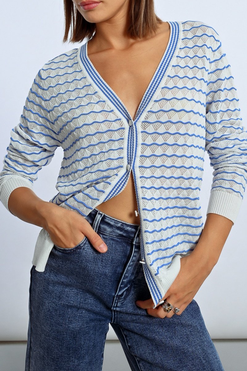 Cardigan - Celeste ed ecrù