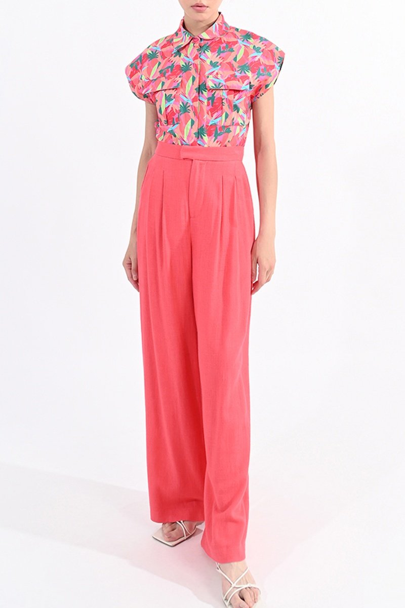 Pantaloni a vita alta in lino - Corallo - Lili Sidonio