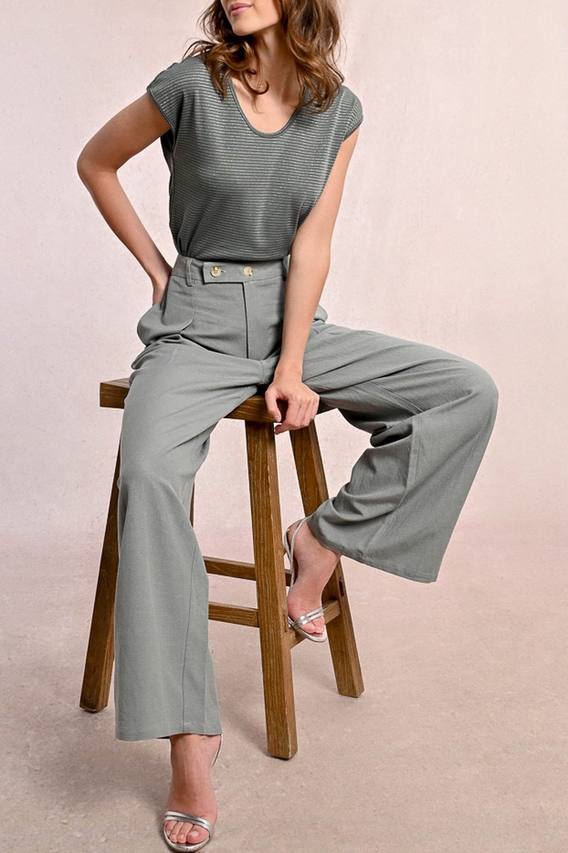 Pantaloni a vita alta in lino - Kaki