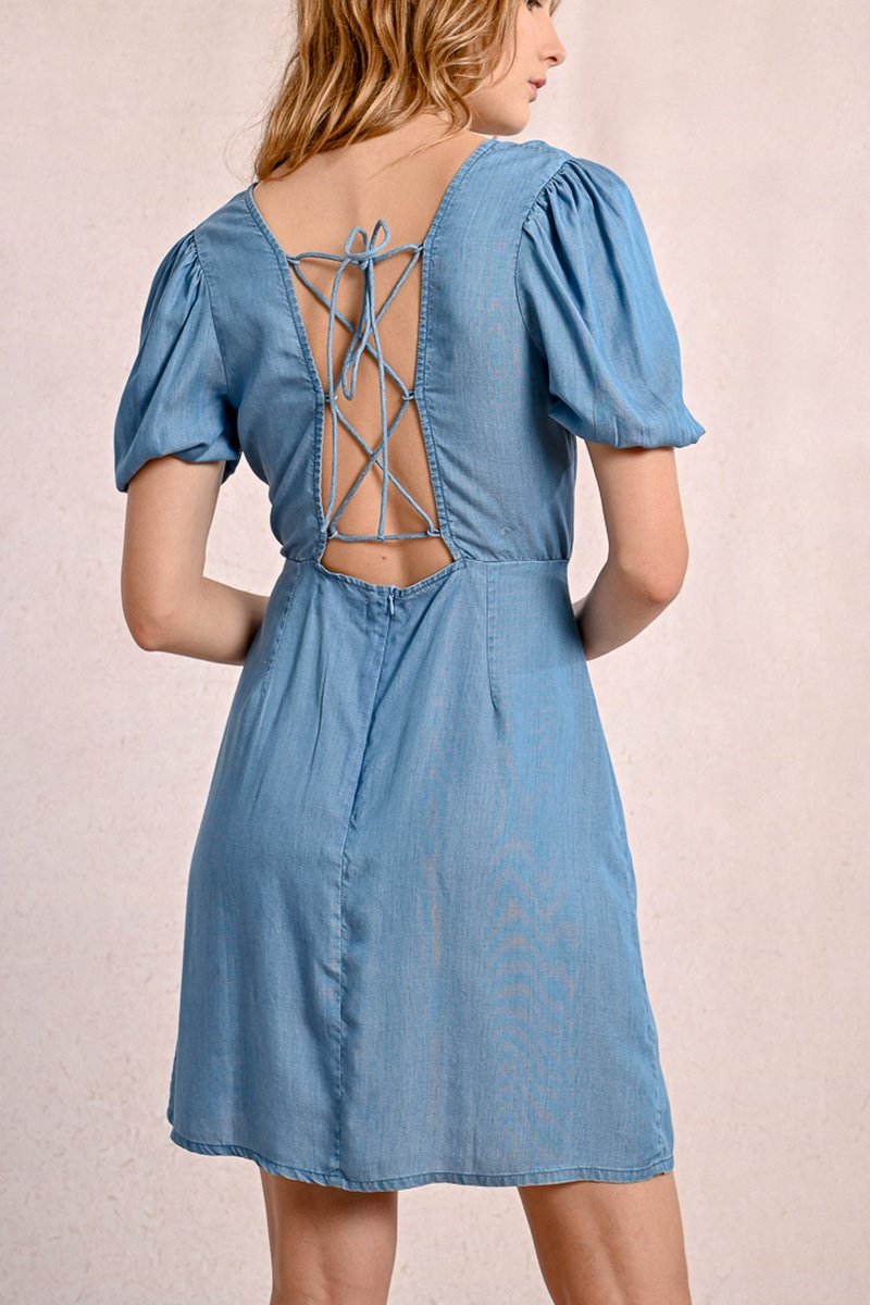 Apertura e lacci incrociati da annodare sul retro.