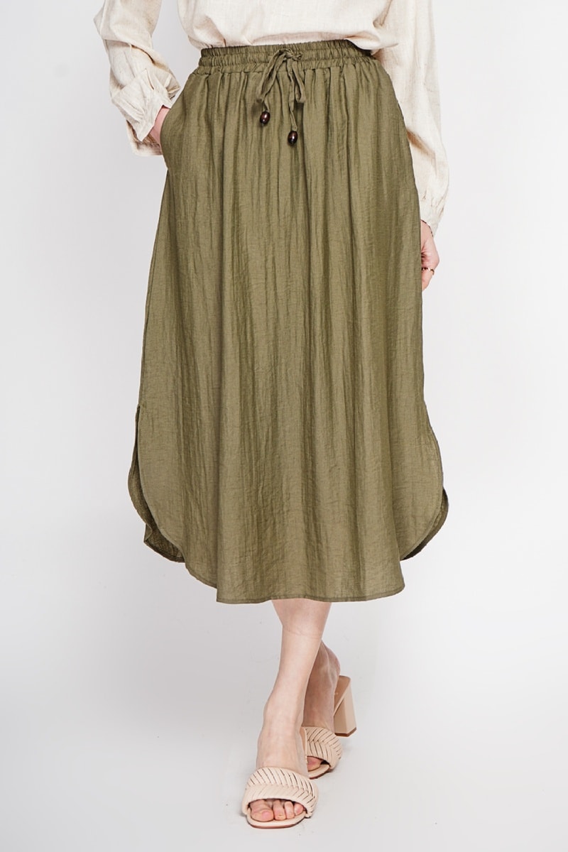 Gonna midi in lino - Kaki