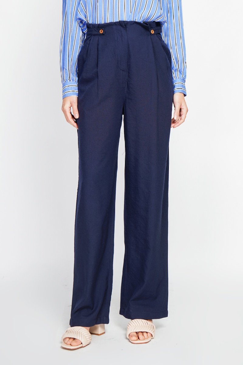Pantaloni larghi in lino a vita alta - Blu
