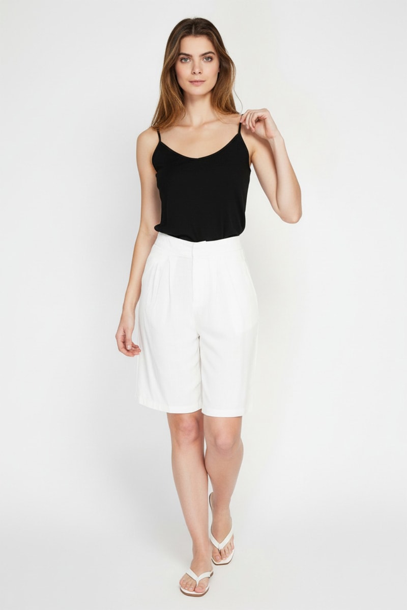 Bermuda a vita alta in lino - Bianco