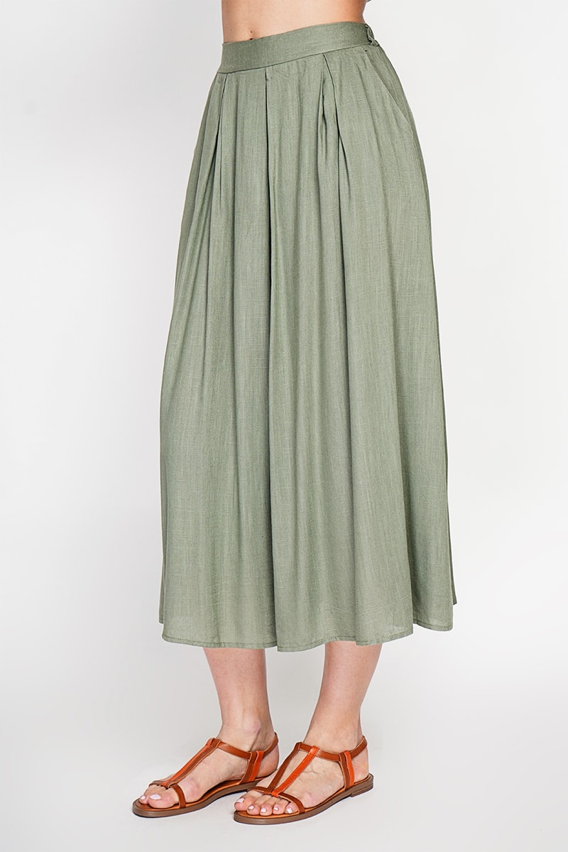 Gonna a campana in lino - Kaki