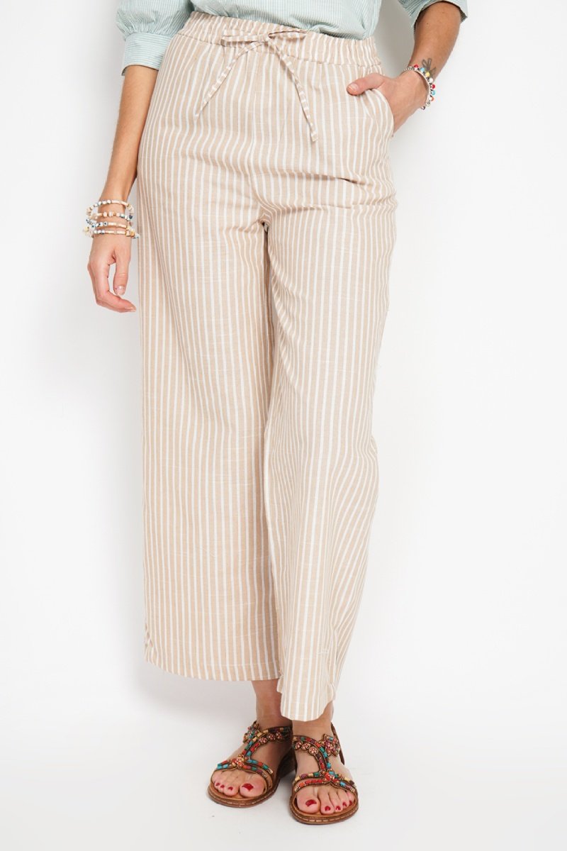 Pantaloni straight in lino - Beige
